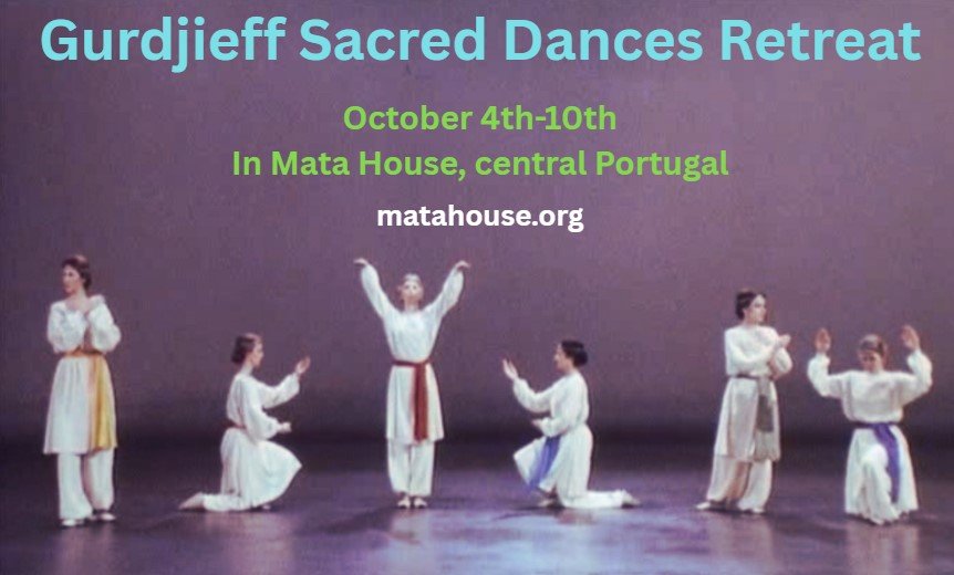 - Gurdjieff Sacred Dances Retreat – “Journey to Inaccessible Places”, with Carol Squire, October 4th-10th – in Mata House, near Tomar.